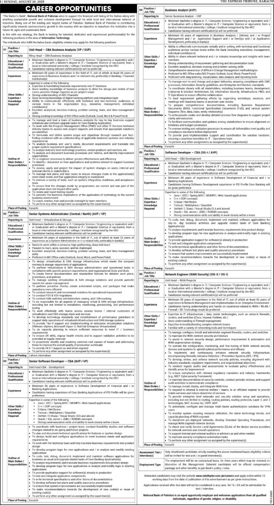 National Bank of pakistan jobs 10-08-2025