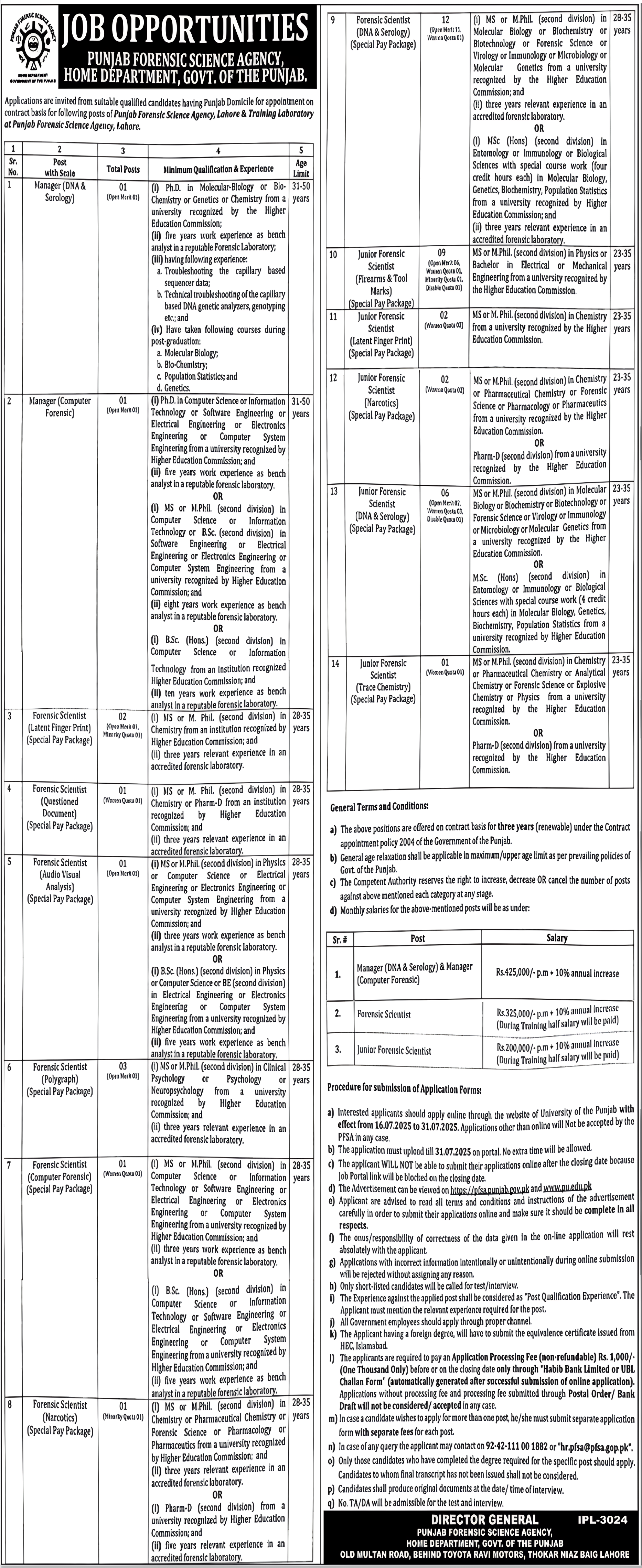 Punjab Forensic Science Agency pfsa Jobs 2025